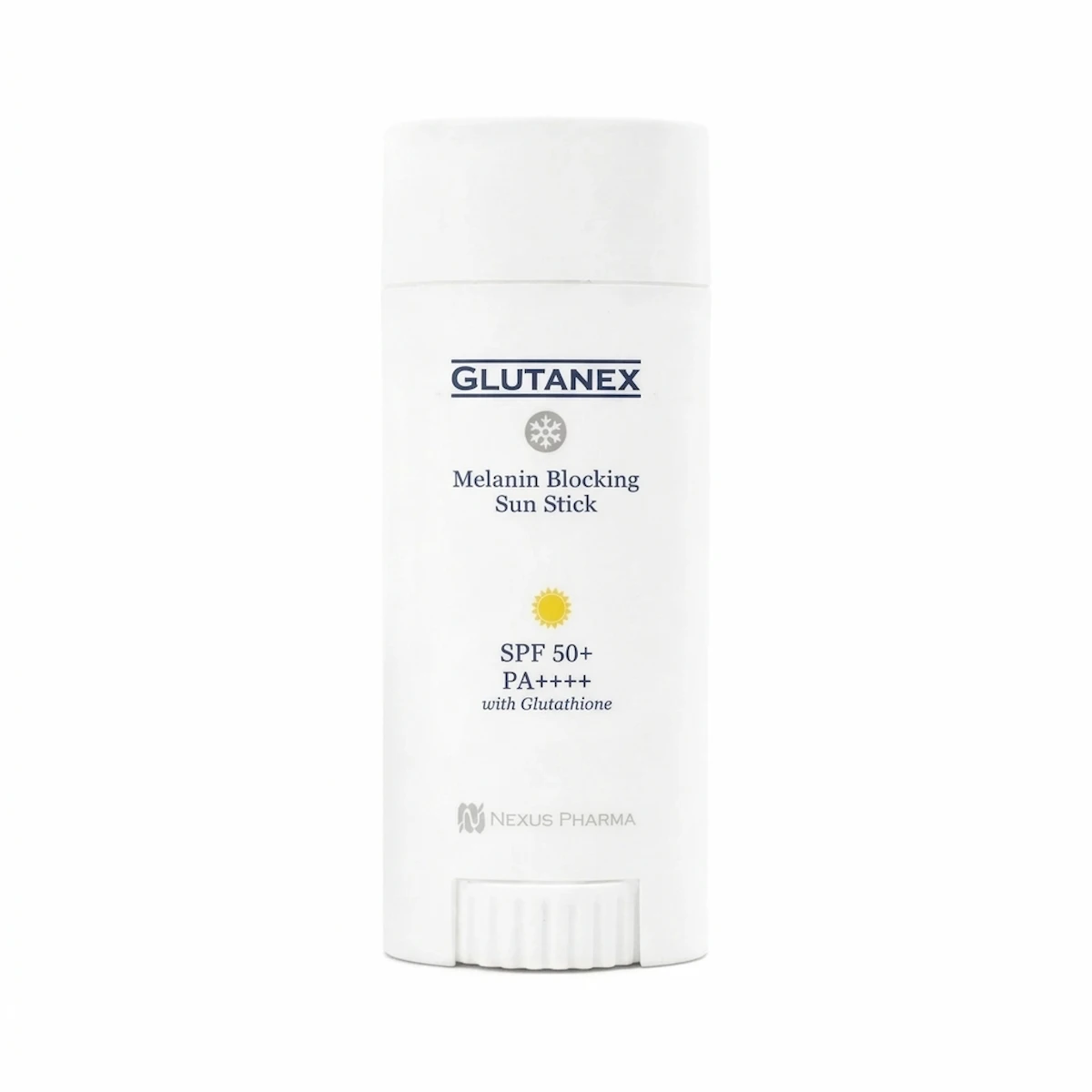 Glutanex Sun Stick es un protector solar en formato barra con SPF 50+ PA++++, formulado con glutatión y dióxido de titanio. Su formato sólido permite una aplicación rápida, limpia y sin residuo, especialmente adecuado para la reaplicación durante el día sin necesidad de extender crema con los dedos.